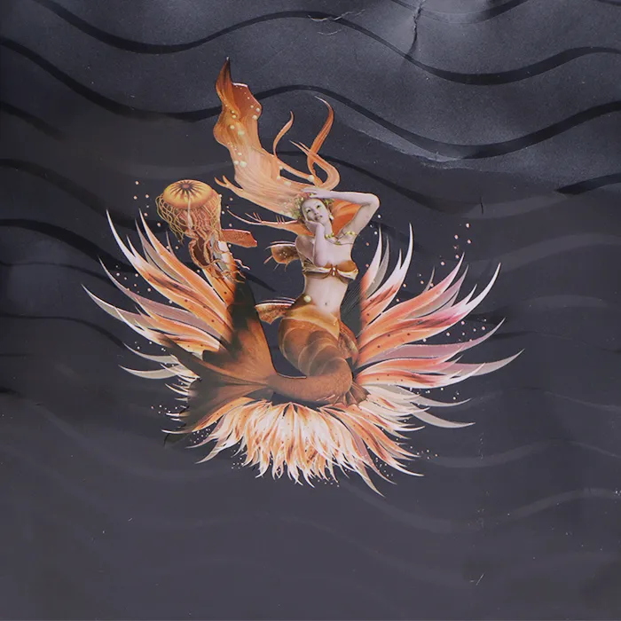 ก่อนหน้านี้ ความมันวาวของโลหะและพื้นผิวที่เรียบเนียนมักเกี่ยวข้องกับการปั๊มฟอยล์ร้อน อย่างไรก็ตาม กระเป๋าช้อปปิ้งเครื่องแต่งกายนี้ใช้กระบวนการพิมพ์และการพิมพ์ลายนูนอย่างสร้างสรรค์ แทนที่การปั๊มฟอยล์ร้อนแบบเดิมๆ เพื่อสร้างประสบการณ์การมองเห็นและสัมผัสแบบใหม่ การพิมพ์และการพิมพ์ลายนูนช่วยให้สามารถไล่สีได้มากขึ้น ลูกค้าสามารถกำหนดสีการพิมพ์ พื้นผิวด้านหรือเงา เอฟเฟกต์โปร่งใสหรือไล่ระดับสีได้อย่างอิสระ ซึ่งแตกต่างจากการปั๊มฟอยล์ร้อนแบบดั้งเดิมที่จำกัดเฉพาะทอง เงิน ทองแดง หรือฟอยล์สีโดยเฉพาะ การพิมพ์และการพิมพ์ลายนูนช่วยให้สามารถผสมสีได้หลายสี กระบวนการพิมพ์ลายนูนยังทำให้ข้อความ โลโก้ หรือลวดลายมีเอฟเฟกต์สามมิติ ซึ่งเพิ่มการโต้ตอบของบรรจุภัณฑ์
