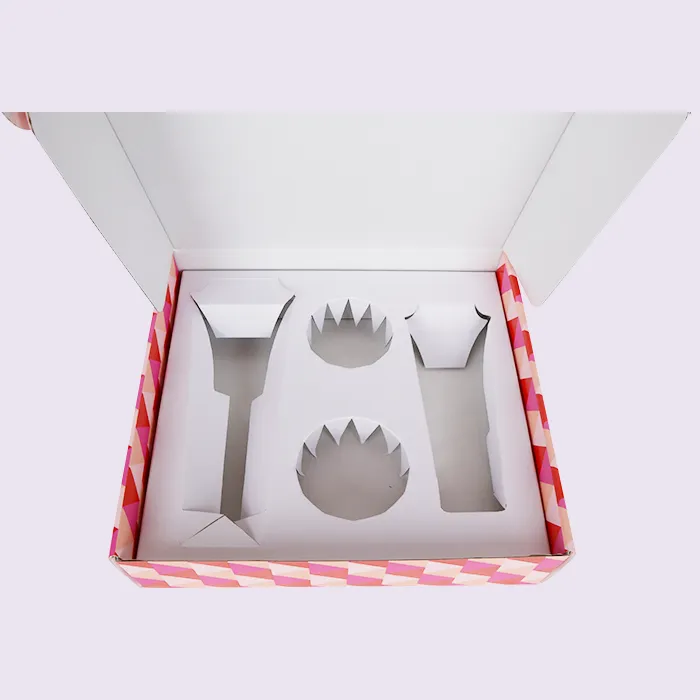 สำหรับเม็ดมีดบรรจุภัณฑ์ เราพิจารณาวัสดุหลายประเภท: กระดาษ พลาสติก โฟม และเม็ดมีดขึ้นรูปที่เป็นมิตรต่อสิ่งแวดล้อม ท้ายที่สุดแล้ว เราเลือกเม็ดมีดกระดาษรีไซเคิลได้ในราคาที่ต่ำ เวลาดำเนินการที่รวดเร็ว ความเรียบง่าย และเป็นมิตรกับสิ่งแวดล้อมและเป็นธรรมชาติที่ย่อยสลายได้ทางชีวภาพ กระดาษแทรกสำหรับกล่องจัดส่งผลิตภัณฑ์ดูแลส่วนบุคคลไม่จำเป็นต้องมีแม่พิมพ์สั่งทำ ดังนั้นจึงไม่ต้องเสียค่าธรรมเนียมแม่พิมพ์ ผู้ออกแบบบรรจุภัณฑ์ของ Doyoupack ปรับแต่งขนาด ช่อง แท็บ และคุณสมบัติการประสานตามตัวอย่าง จากนั้นจึงผลิตเม็ดมีดผ่านการตัดด้วยไดคัท กระดาษสอดเป็นวัสดุลูกฟูกชิ้นเดียว คุ้มค่า ย่อยสลายได้ทางชีวภาพ และเป็นมิตรกับสิ่งแวดล้อมสูง ไม่เพียงแต่แสดงผลิตภัณฑ์ได้ดี แต่ยังให้การสนับสนุนและการปกป้องอีกด้วย สิ่งสำคัญที่สุดคือ ช่วยลดน้ำหนักโดยรวมของชุดผลิตภัณฑ์ได้อย่างมาก เมื่อเทียบกับเม็ดมีดที่ขึ้นรูปที่เป็นมิตรต่อสิ่งแวดล้อม เม็ดมีดพลาสติก หรือเม็ดมีดเกรย์บอร์ด เม็ดมีดลูกฟูกแบบชิ้นเดียวและกล่องจัดส่งผลิตภัณฑ์ดูแลส่วนบุคคลแบบชิ้นเดียวยังอำนวยความสะดวกในการขนย้ายแบบเรียบอีกด้วย